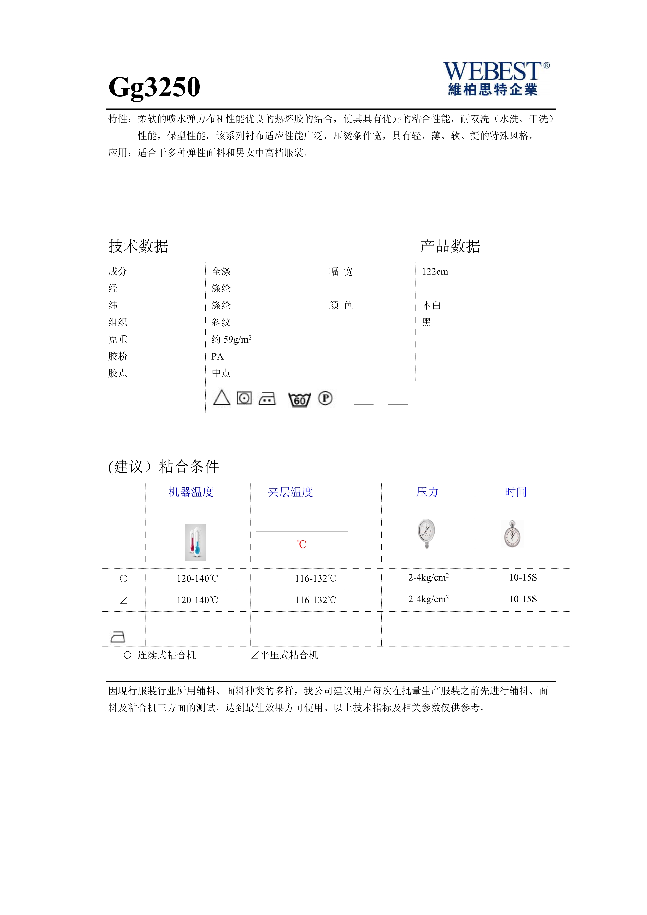 | Gg3250 | 59 | 全滌 | 斜紋 | 122 | 黑,本白 | |