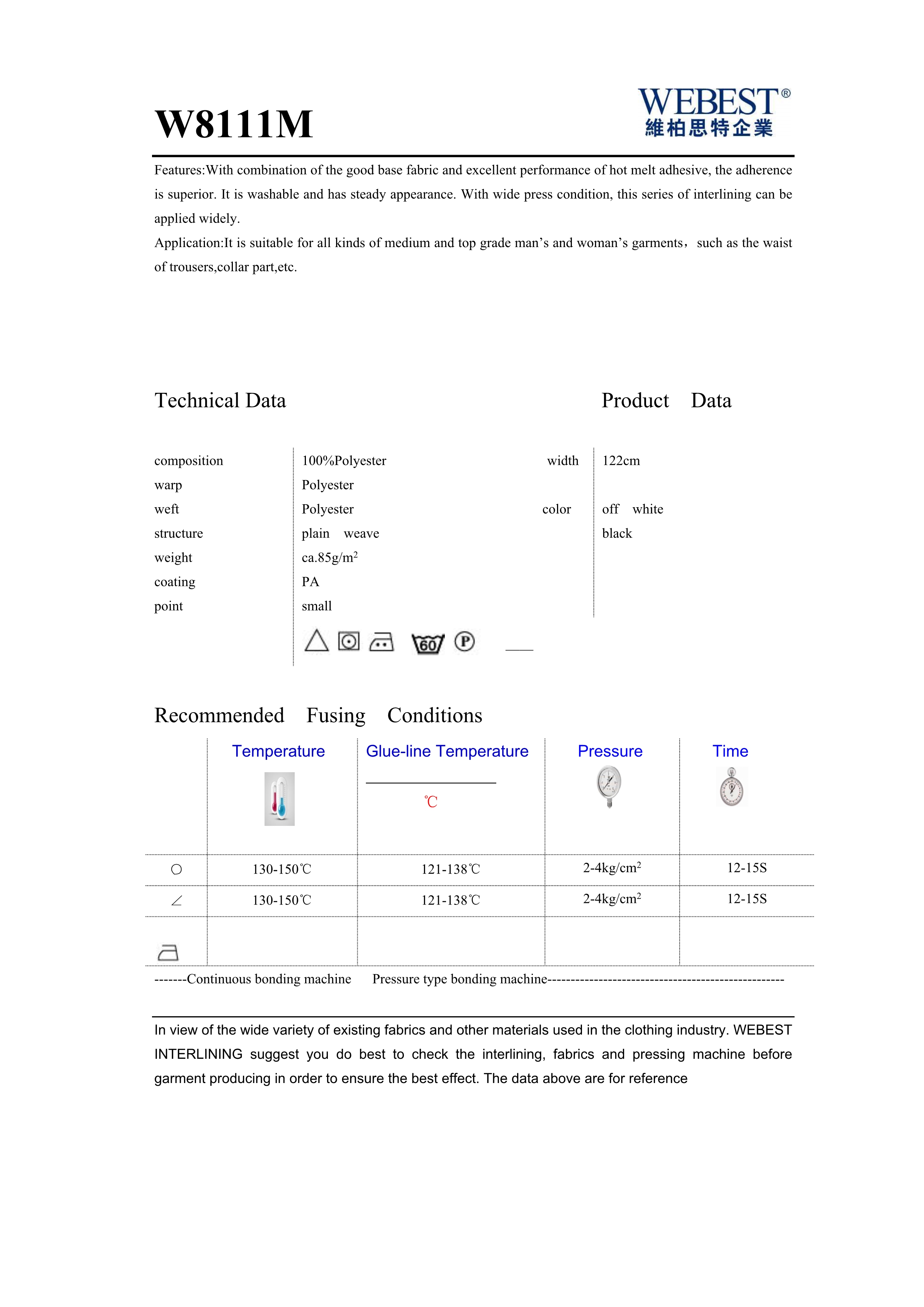 | W8111M | 85 | 100%PES | plain weave | 122 | black,off white | |