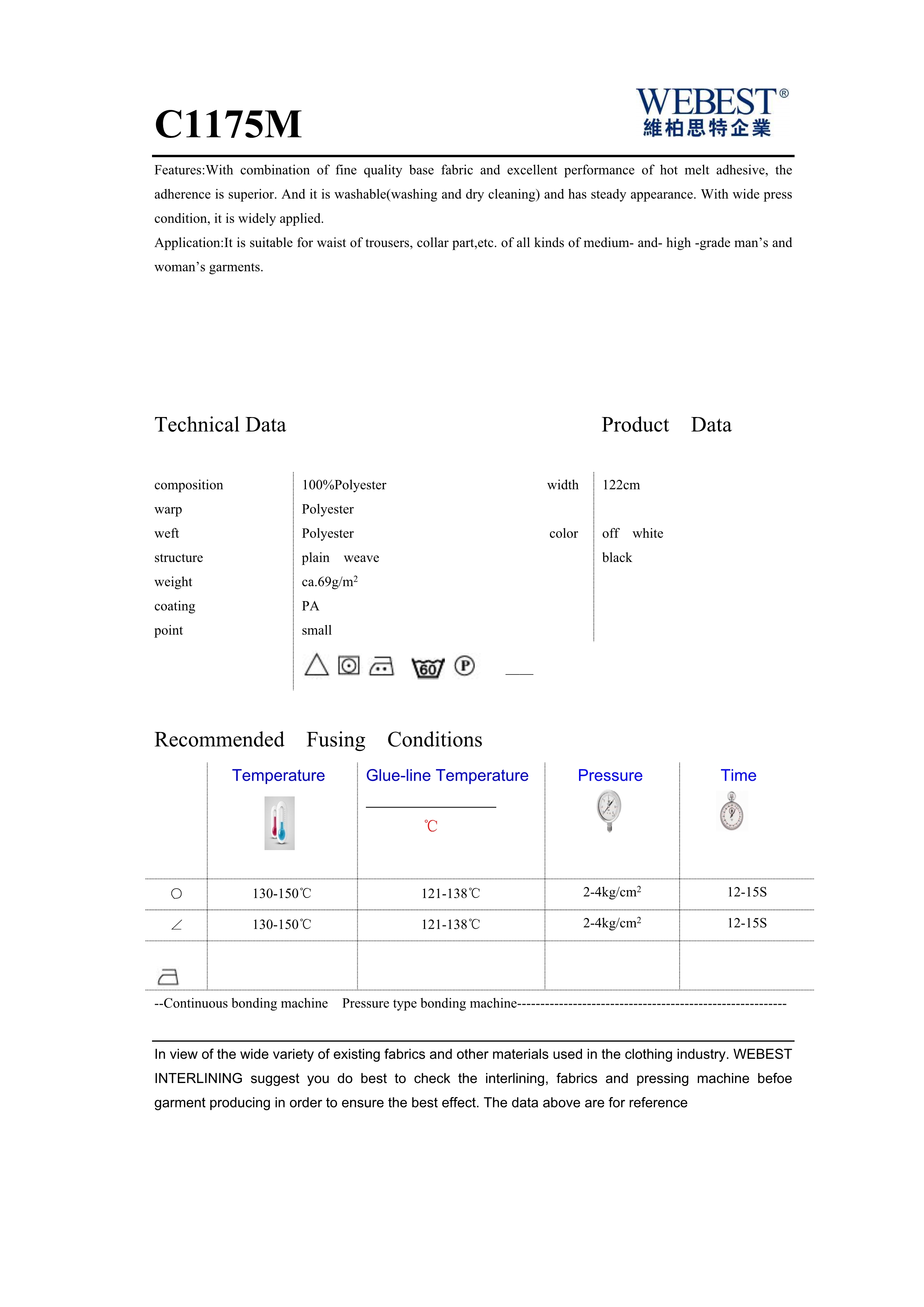 | C1175M | 69 | 100%PES | |