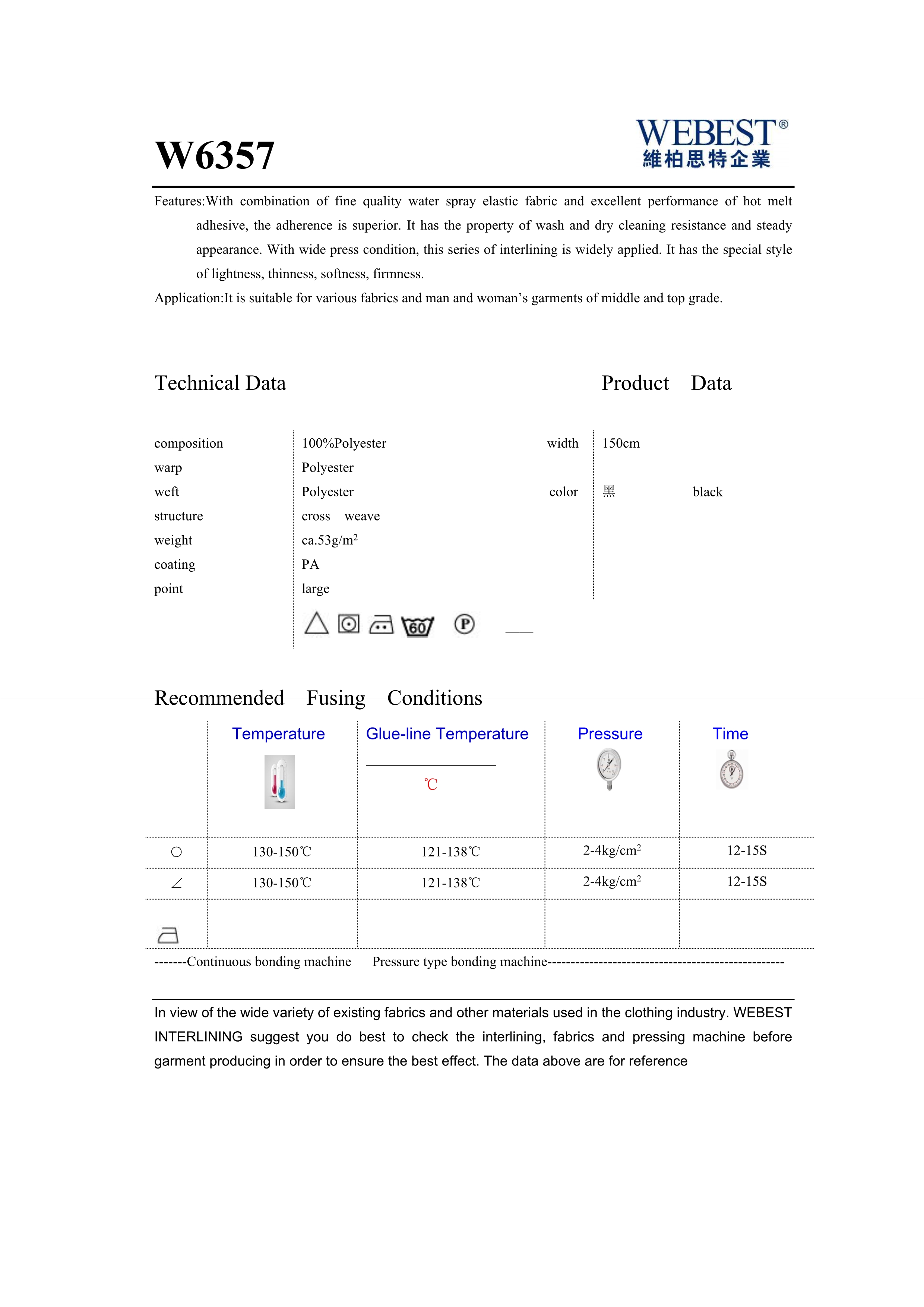 | W6357 | 53 | 100%PES | cross weave | 150 | black,off white | |